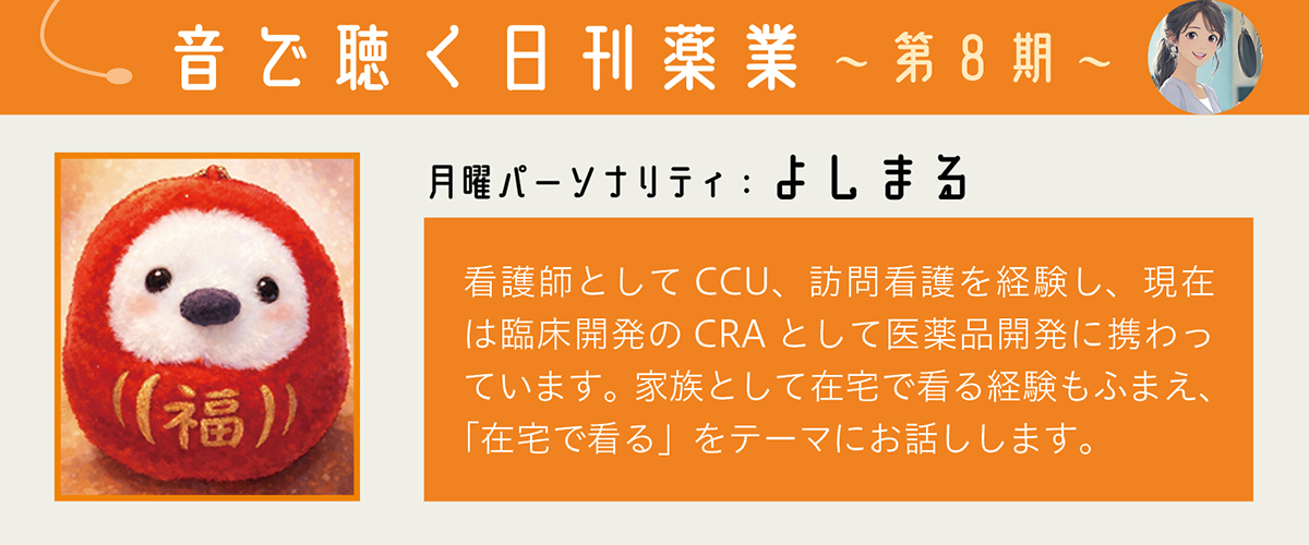 ◎本日の「音で聴く日刊薬業」、パーソナリティは「よしまる」さんでした。